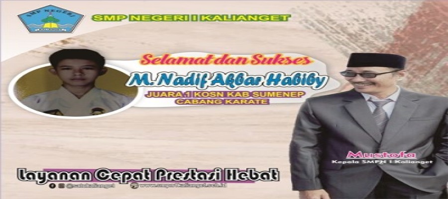 Multi talenta itulah kata yang pantas diberikan kepada Moh. Nadif Akbar Habiby atau yang akrab disapa Nadif,  bibit unggul Karateka berbakat asal SMPN 1 Kalianget, setelah sebelumnya masuk lima besar mewakili Children’s Forest Program(CFP) 2020  Indonesia menuju lomba poster Internasional di Jepang yang diselenggarakan oleh OISCA (Organization For Industrial Spiritual and Cultural Advancement), kali ini ia juga tampil apik dan luar biasa dengan menjadi juara 1 Kompetisi Olahraga Siswa Nasional(KOSN) ke XIII tahun 2020 tingkat Kabupaten Sumenep Cabang Karate pada Nomor Kata perorangan di Nomor Jurus Tunggal Putra.